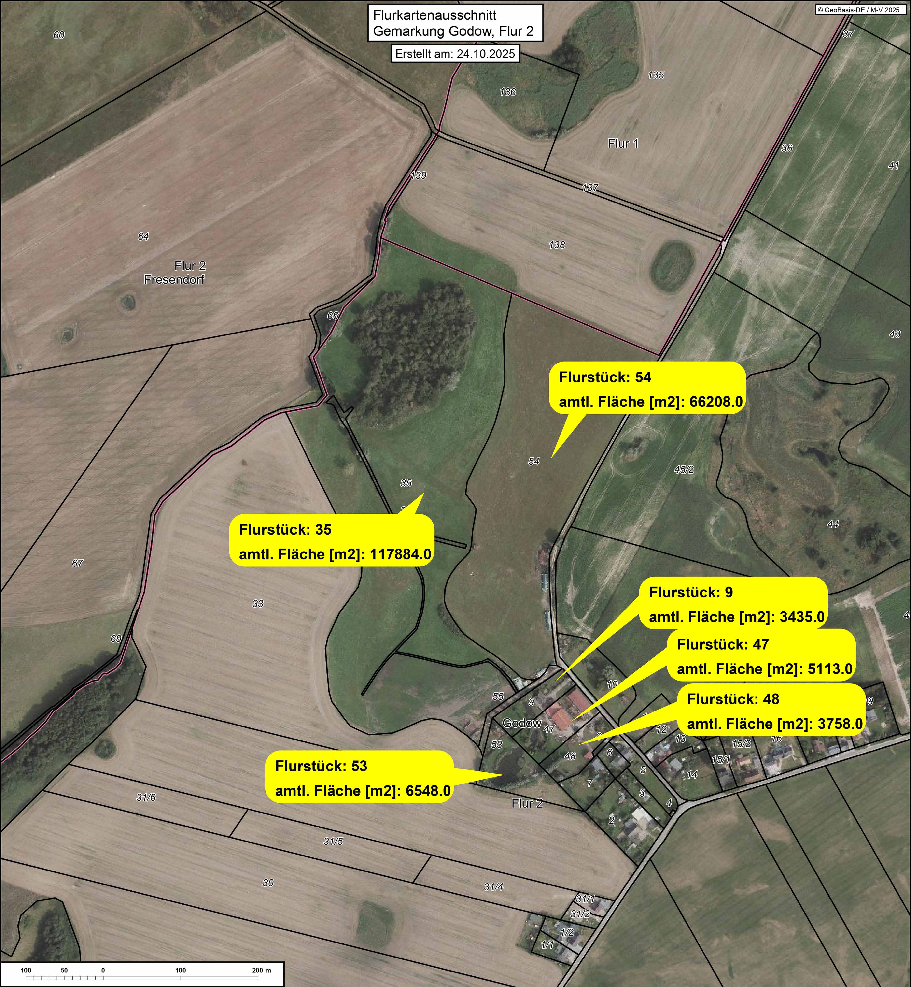 - Von Flst. 48 sind 2 Baugrundstücke von jeweils ca. 800 m² abteilbar