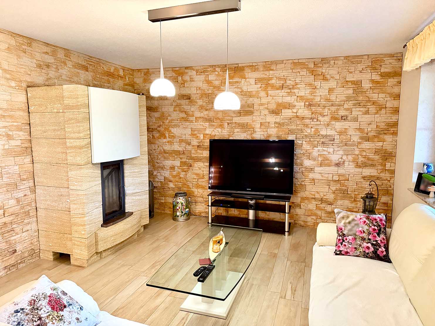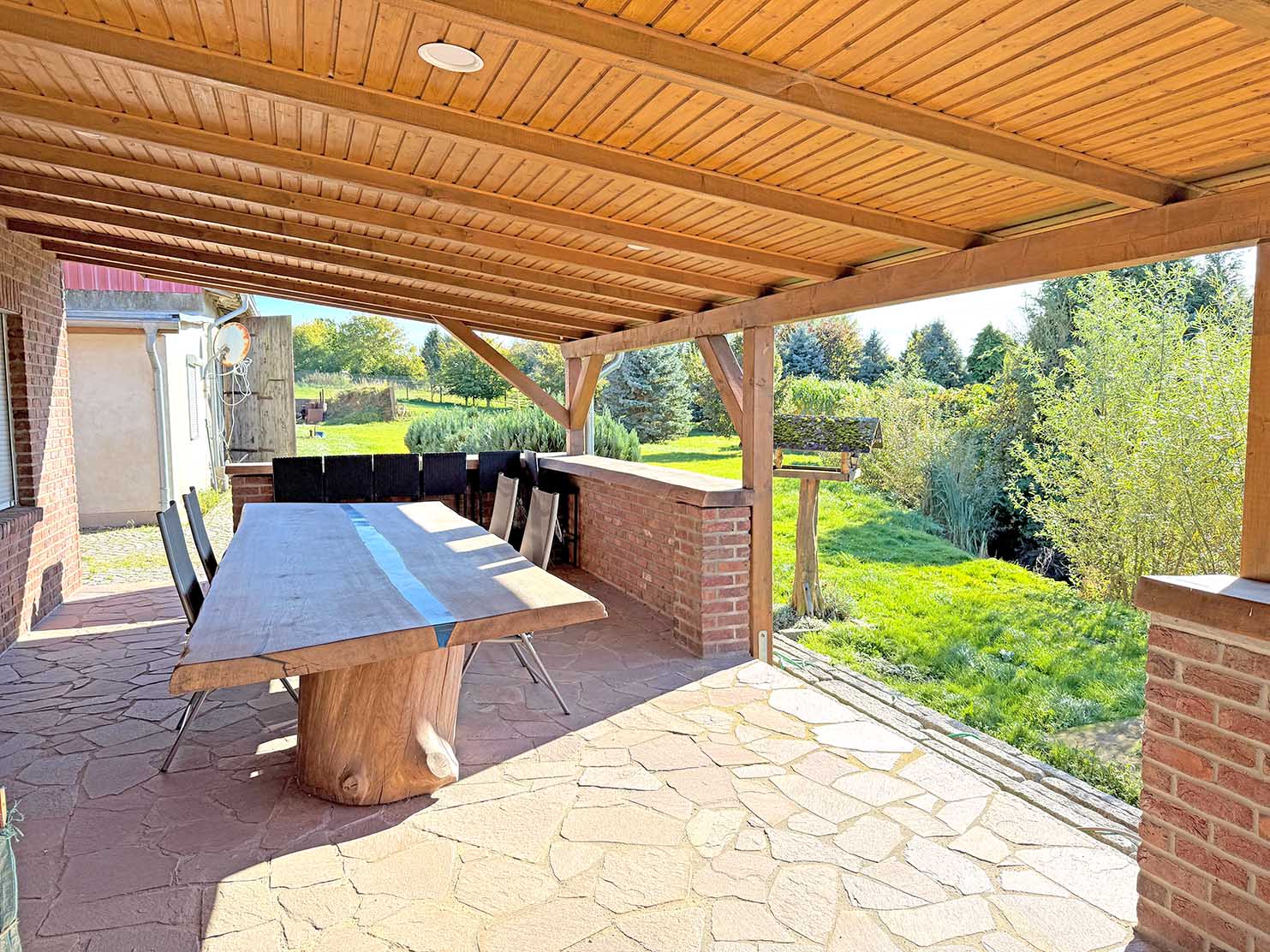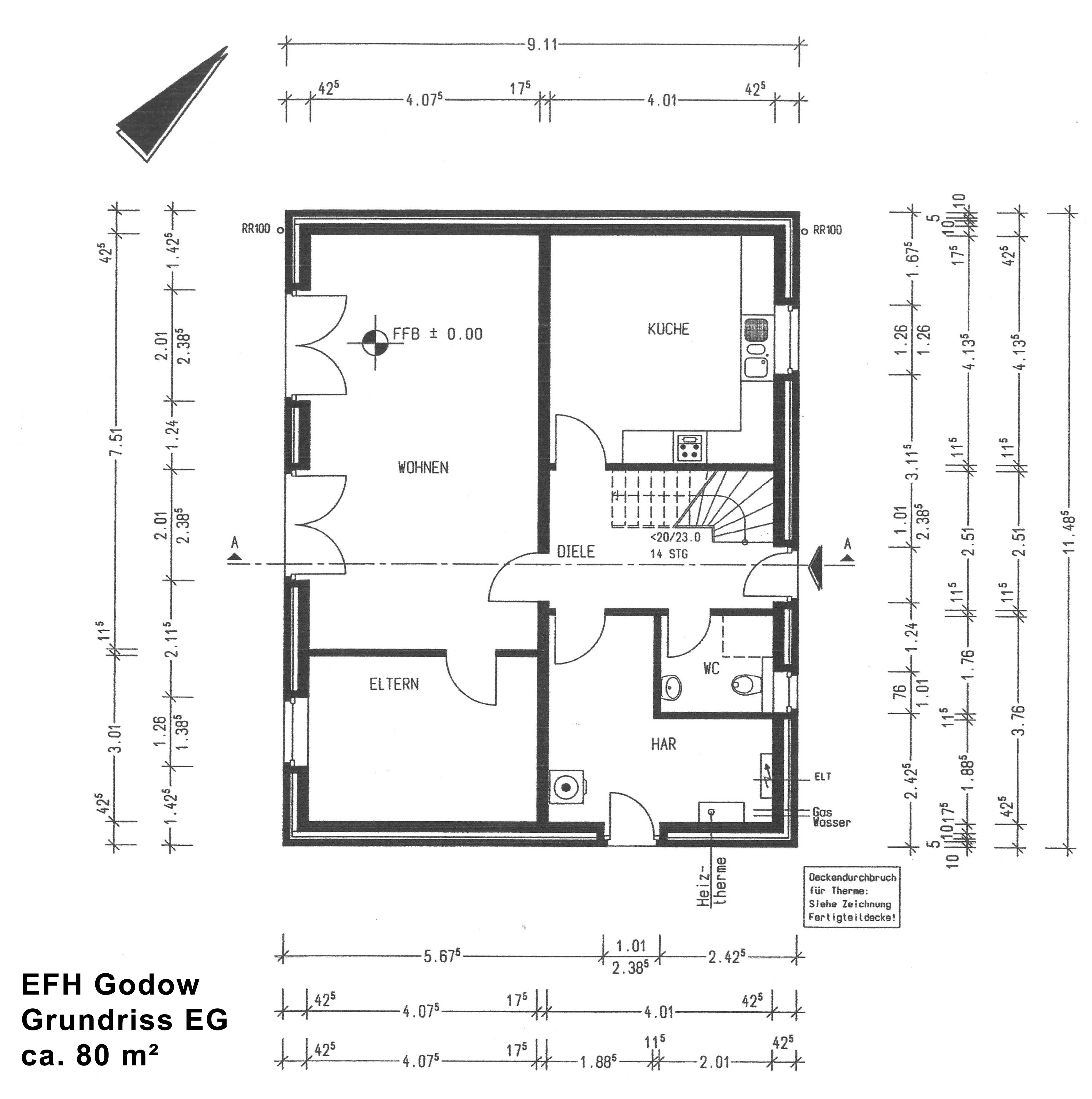 - 1 Zimmer, Wohnküche, Duschbad, Flur, Heizraum (Holzheizung für EFH & Stall-WE)