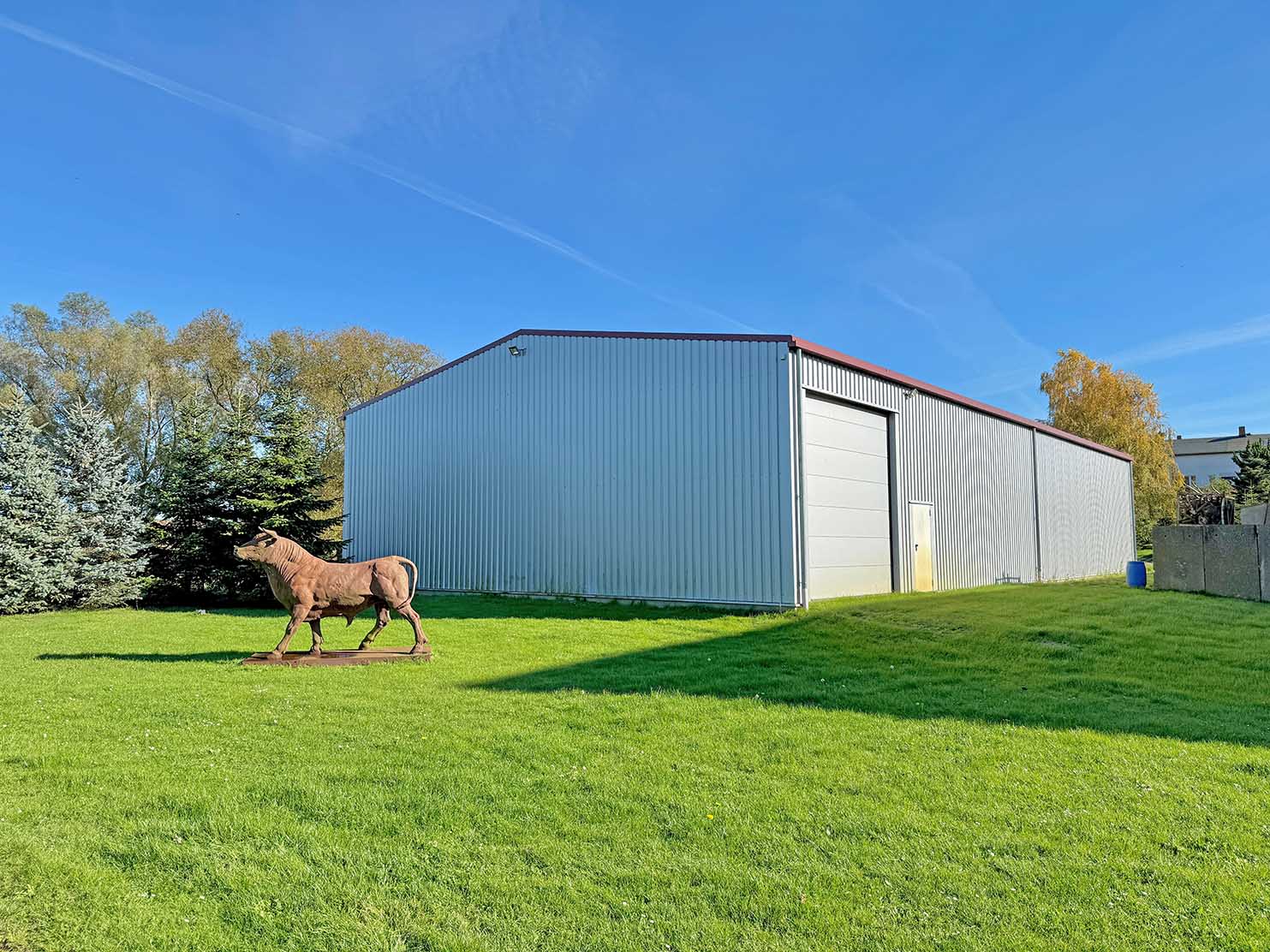 - Schwerlastfundament, Stahlgerüst, Blechfassade, Blechdach