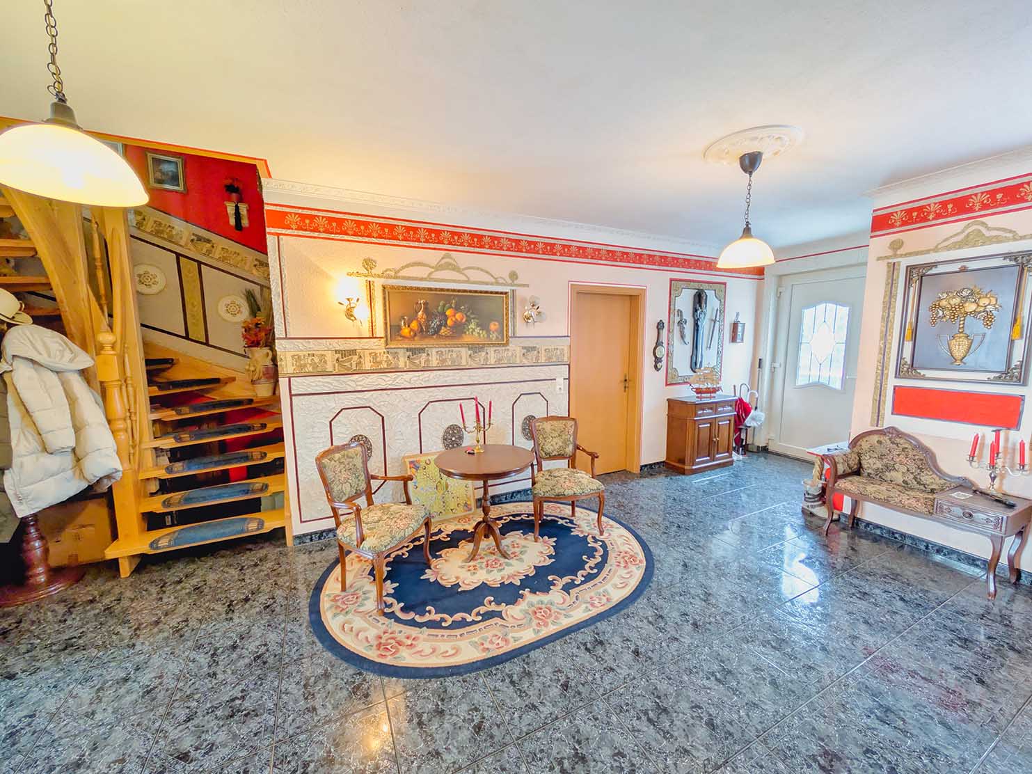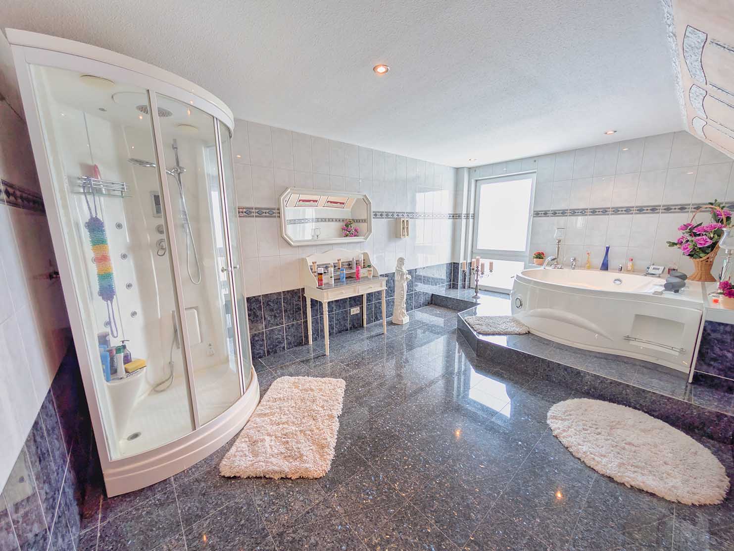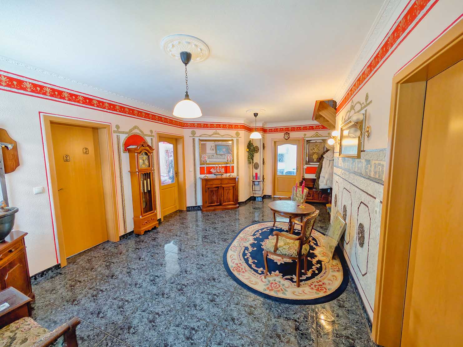 - Fußböden: Fliesen, Teppich