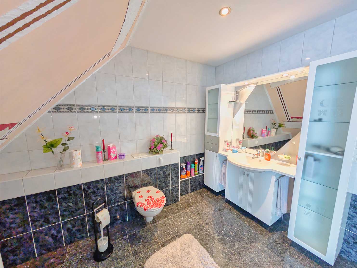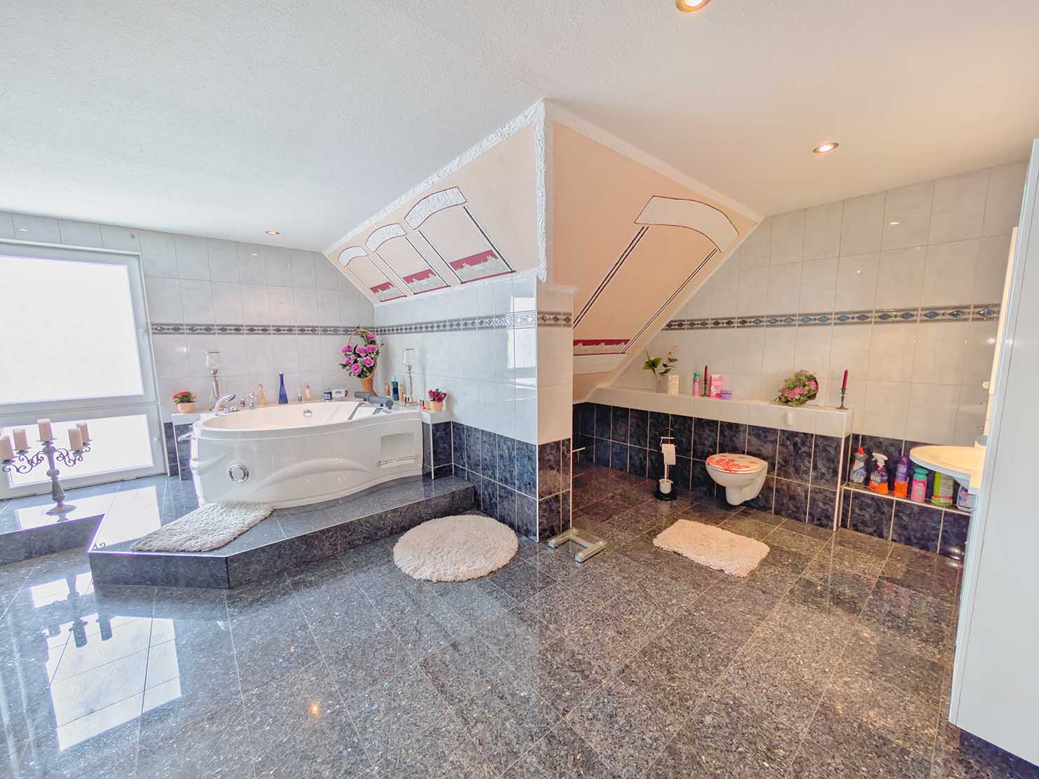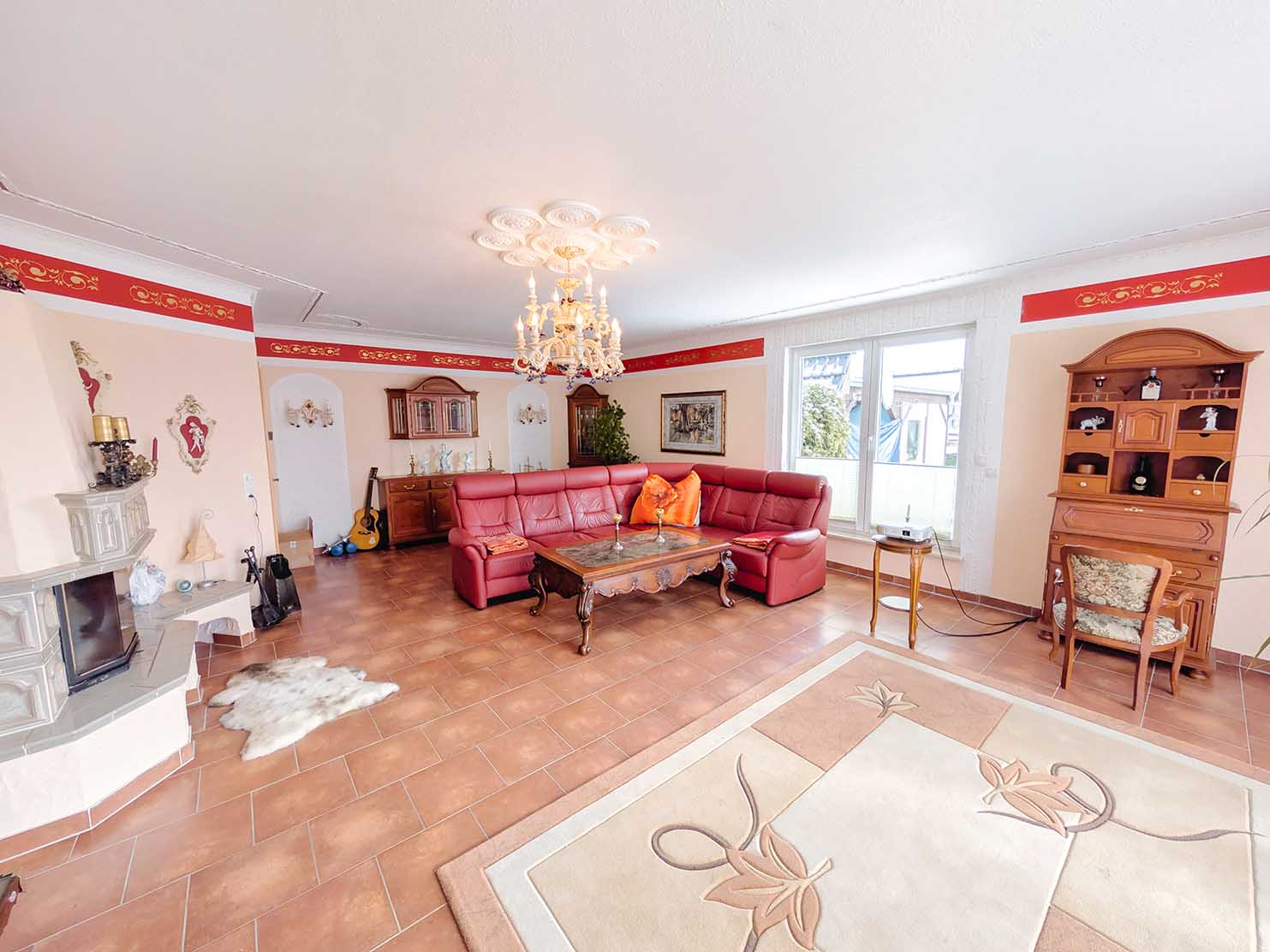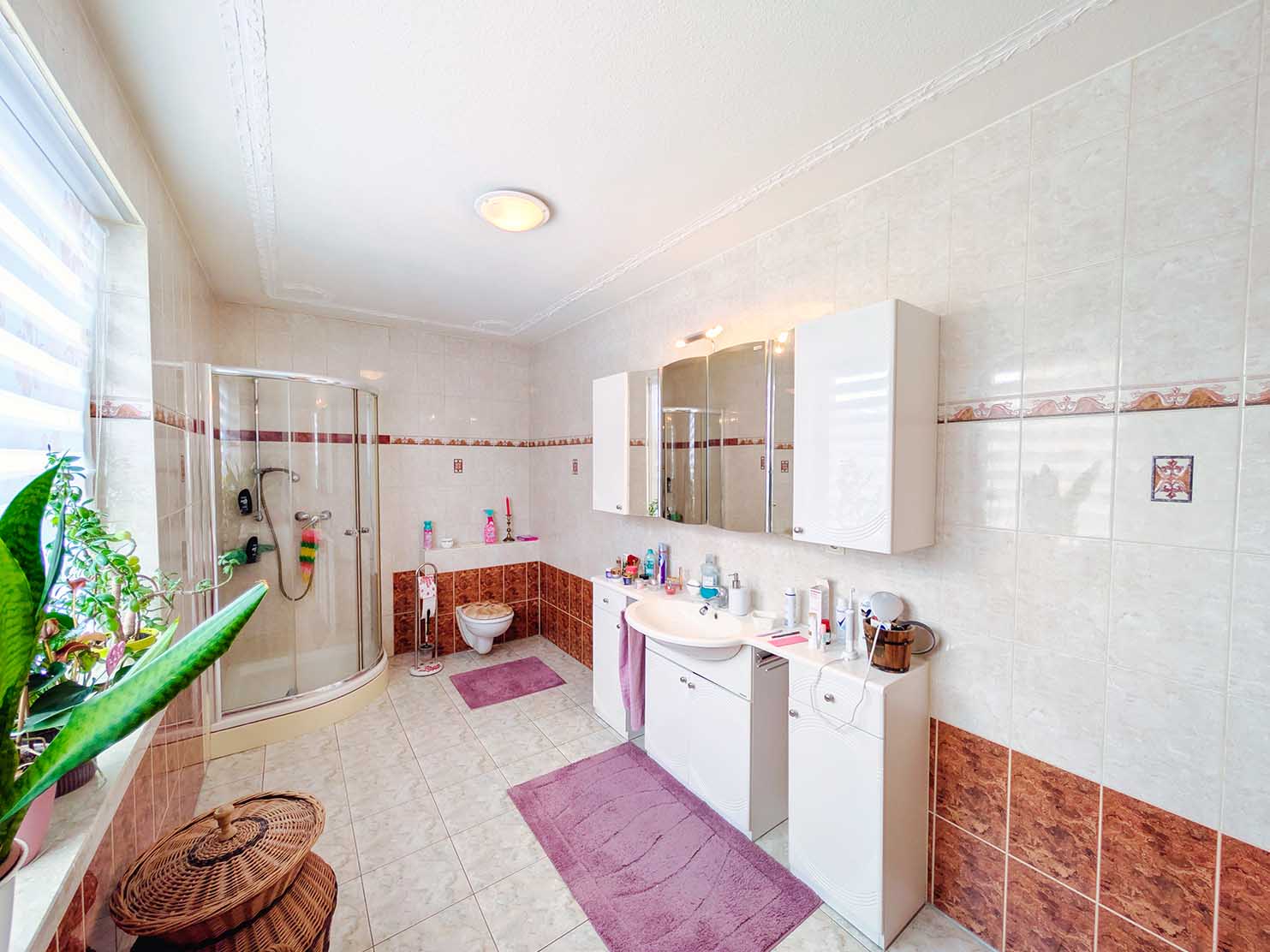 - Fußböden: Fliesen, Teppich