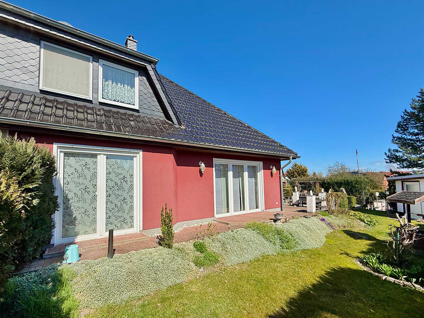 - Massivbau, Putzfassade, Ziegeldach