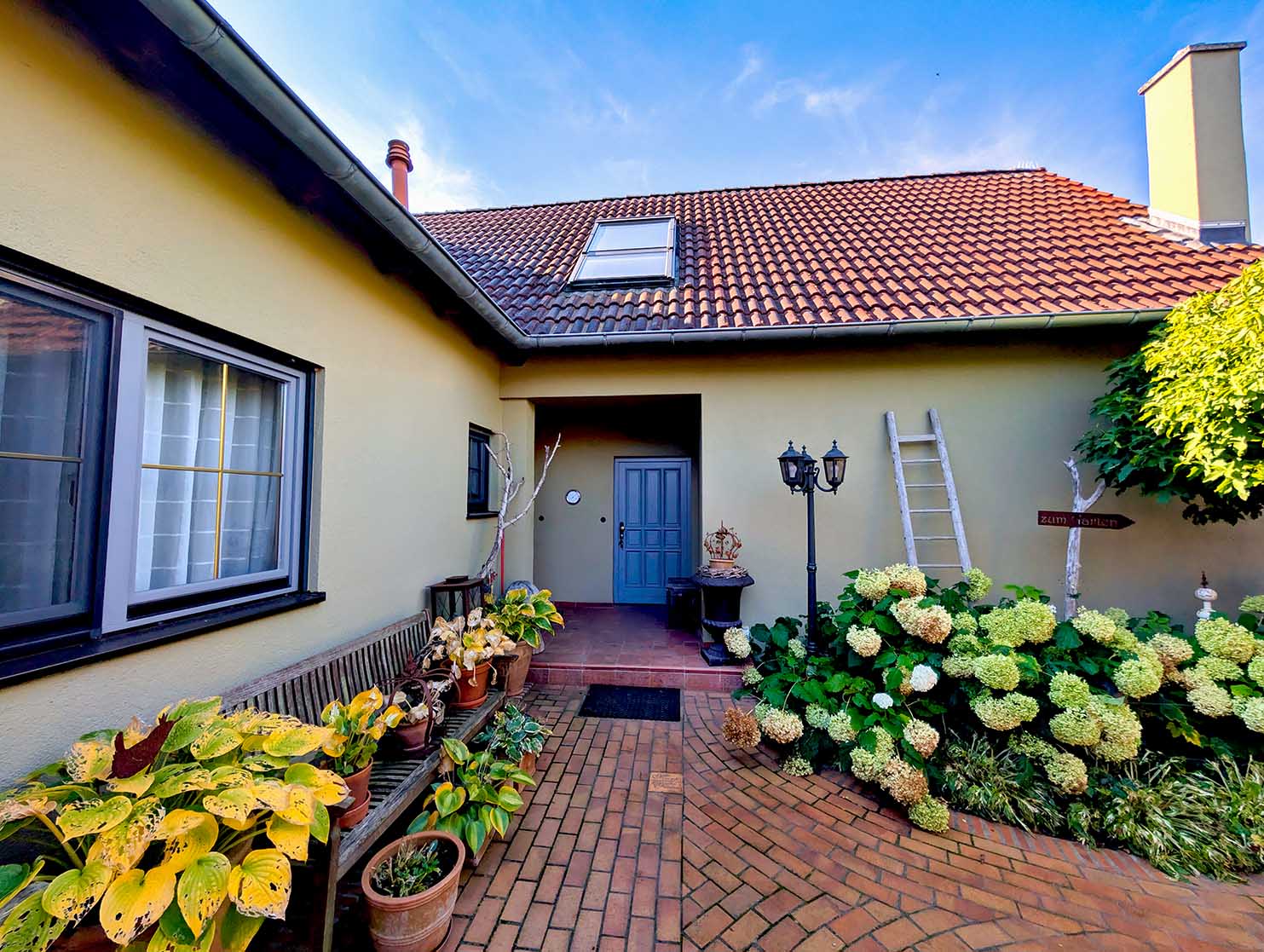 - Ständerbauweise, 1998 massiv angebaut, gedämmt, Putzfassade mit kleinem Klinkerbereich, Ziegeldach