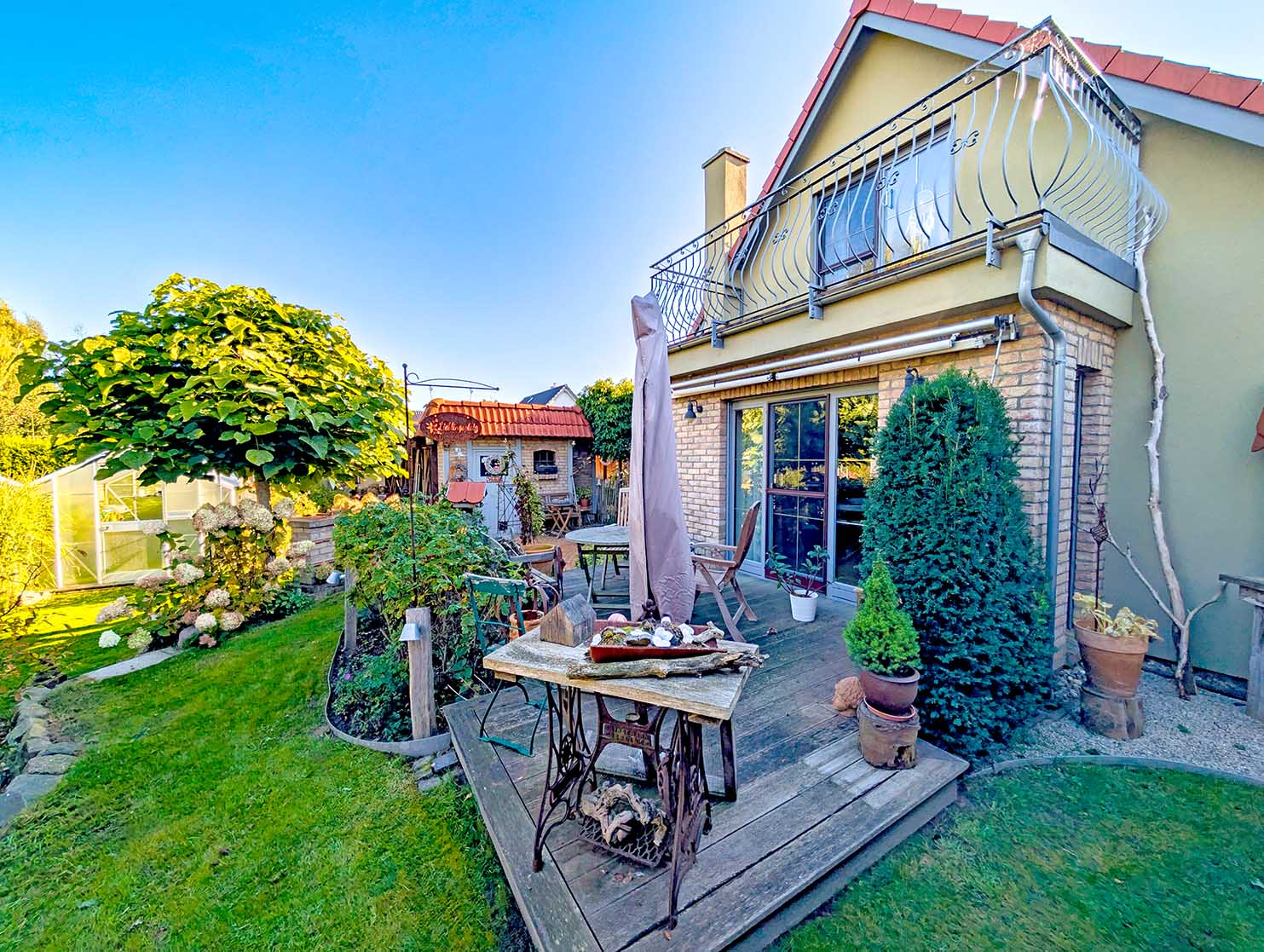 - großer Garten mit überdachter Lounge