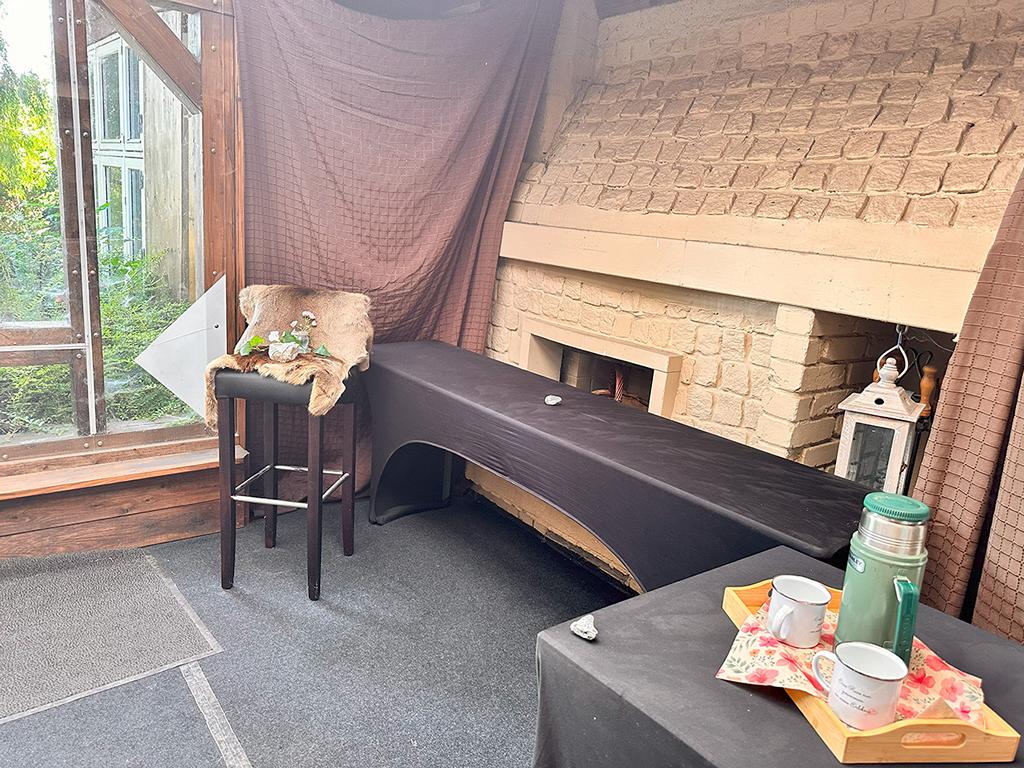 Hobbyraum mit Gasküche und Backofenkamin, Flure