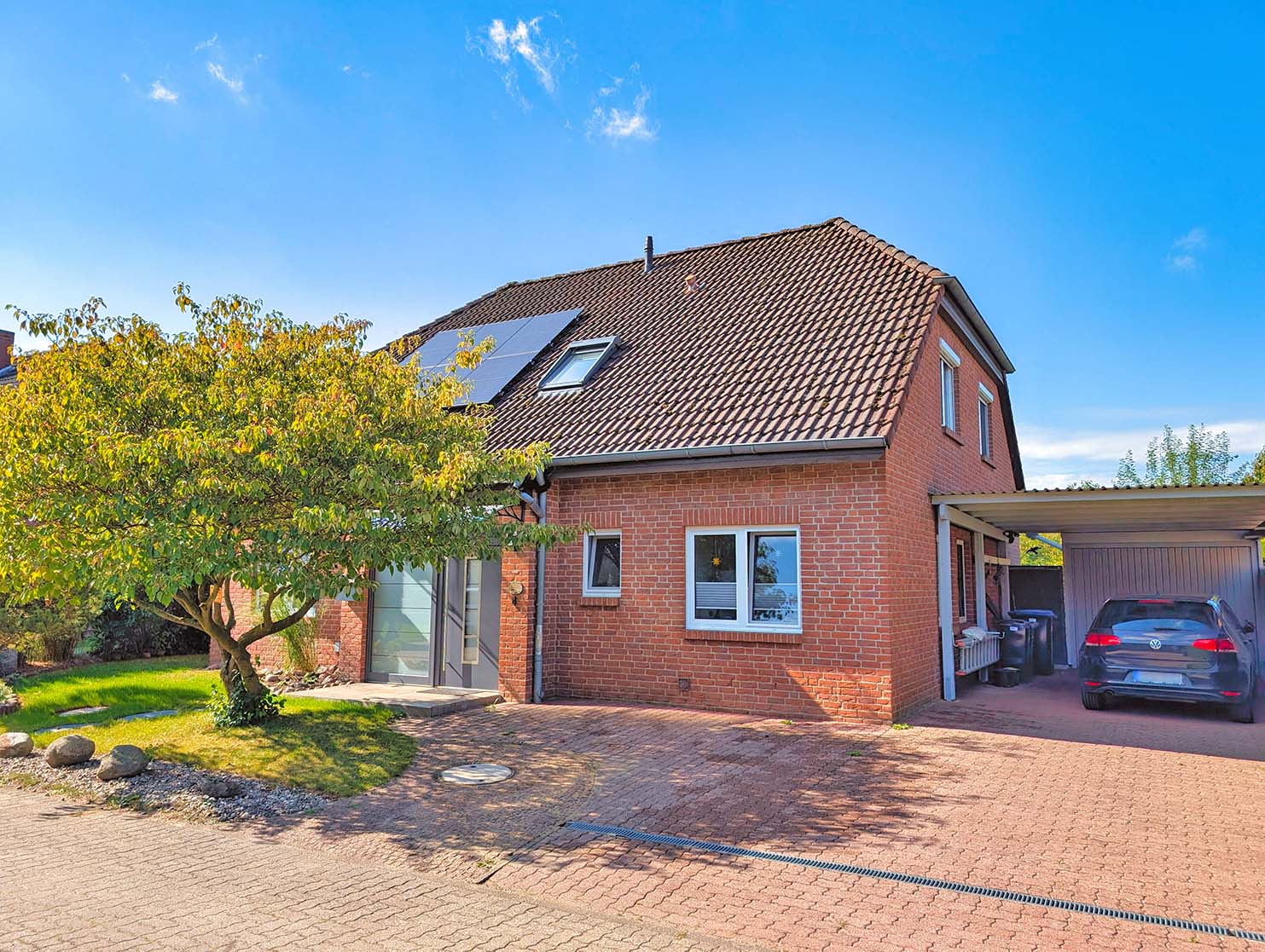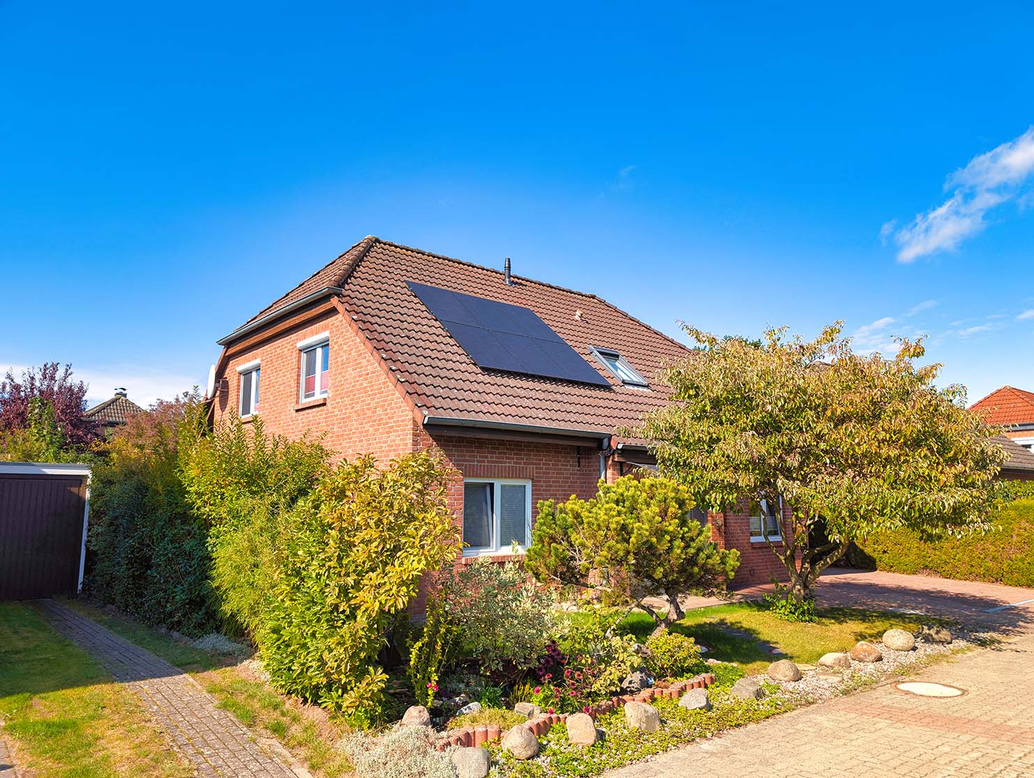Das massiv gebaute Einfamilienhaus präsentiert sich in solider Bauweise mit gedämmter Fassade und hochwertigem Riemchenverblender sowie klassischem Ziegeldach. Der durchdachte Grundriss und die großzügigen Räumlichkeiten bieten viel Platz für Familien und Paare, die Wert auf Komfort und Wohnqualität legen. Das Haus zeichnet sich durch einen außergewöhnlichen Grundriss, verbunden mit einer hellen und Licht durchfluteten Wohnatmosphäre aus. Hochwertige Materialien sorgen für ein behagliches Wohngefühl.