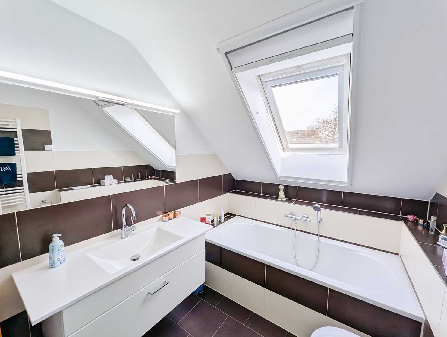 Weiterhin befindet sich im Obergeschoss ein schönes Tageslichtbad mit einer Badewanne.