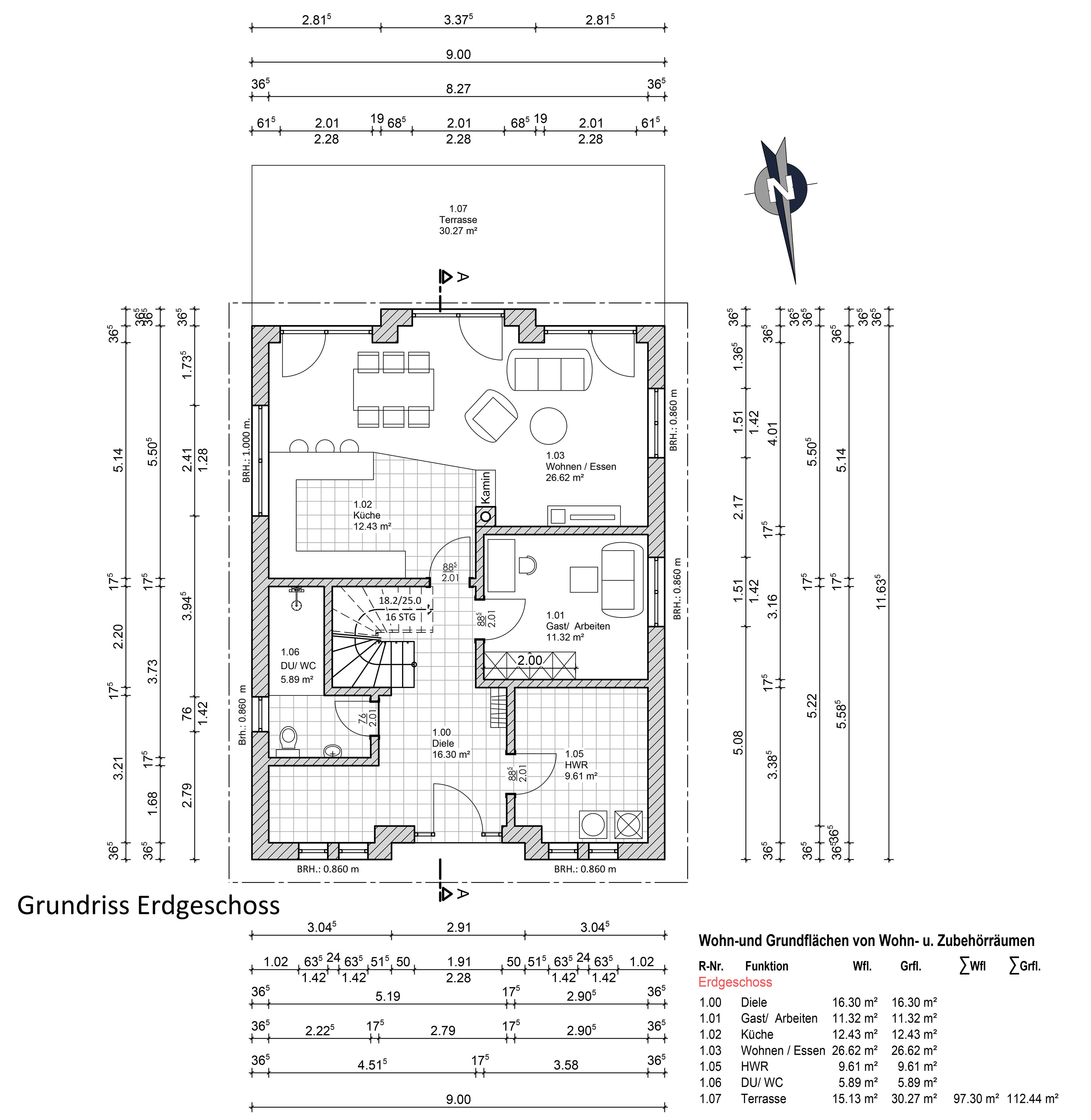 - Heizung: Luftwärmepumpe mit vollflächiger Fußbodenheizung